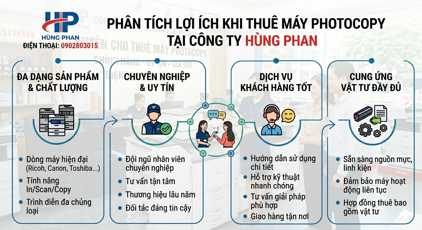 Bạn đang tìm kiếm dịch vụ thuê máy photocopy phường tại phường Chợ Lớn để phục vụ công việc văn phòng hoặc kinh doanh? Với nhu cầu in ấn cao tại khu vực giao thương sầm uất như Chợ Lớn, việc sở hữu một chiếc máy photocopy đời mới, hoạt động ổn định mà không tốn chi phí đầu tư ban đầu là giải pháp tối ưu nhất. Giải pháp dành cho các bạn là công ty TNHH TM&DV XNK Hùng Phan. Chúng tôi chuyên cung cấp dịch vụ cho thuê máy photocopy chuyên nghiệp, hỗ trợ kỹ thuật 24/7 ngay tại khu vực của bạn.